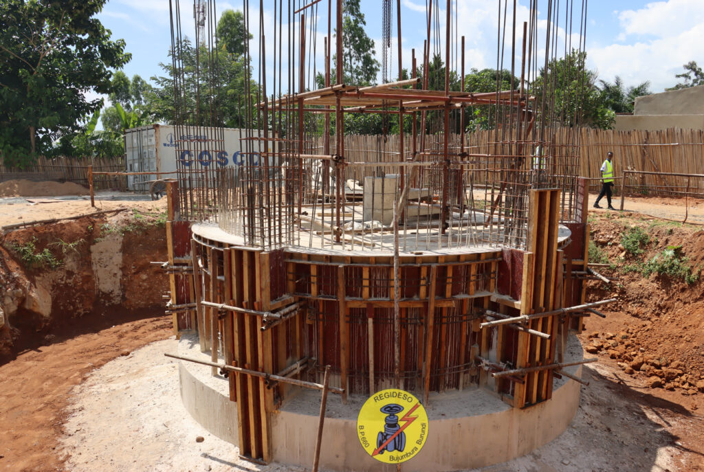 • Construction d’un réservoir surélevé à Rukinga (capacité : 400 m³, hauteur : 10 m). Les murs de soutènement sont achevés ; les travaux du réservoir proprement dit sont avancés à 70%.